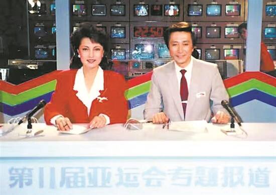 侯玉婷(左)与宋世雄搭档主持第11届亚运会专题报道 (作者供图)