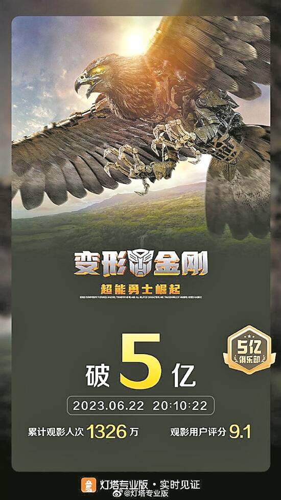 6月9日上映的《变形金刚:超能勇士崛起》在端午小长假继续发力,凭借档期6792万元的票房成绩,暂列2023年端午档票房第三位。