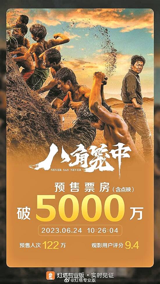 王宝强自导自演新片《八角笼中》以点映票房4951.3万元紧随其后。该片将于7月6日正式登陆全国院线。