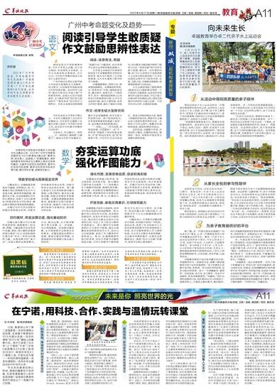 华南师范大学附属中学奥校工作处副主任马腾冰分析,2023年广州市中考数学试题呼应2022《新课标》提出的“素养为纲、综合育人、实践育人”的课程理念,很好地将数学学科特点与立德树人根本任务有机融合,从数学与实际生活的联系,数学与社会经济的发展,数学与科学技术的进步等方面,展示学科价值,发展学生能力。