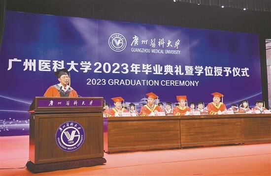 “广医的同学们,不但要有理想,更要有梦想!不但要对自己有要求,更要有追求!不但要有志气,更要争气!不但要有热情,更要有激情!”6月26日,广州医科大学2023年本科生毕业典礼在该校番禺校区礼堂举行,“共和国勋章”获得者、中国工程院院士、广医老校长钟南山出席并发表讲话,寄语广医毕业生“迈向更加宽广的天地”。2096名本科生、1175名硕士生、92名博士生圆满完成学业,奔赴人生新征程。
