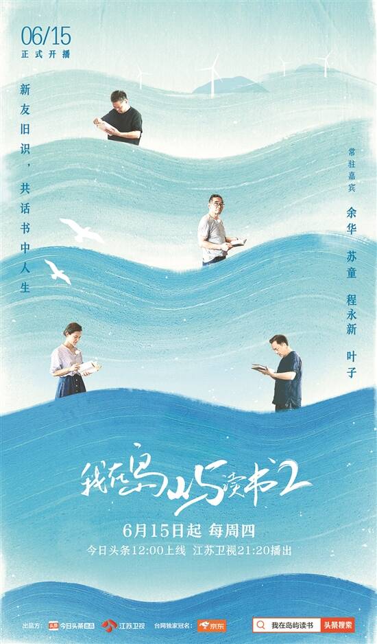 6月中旬,外景纪实类读书节目《我在岛屿读书》第二季登陆江苏卫视,每周四更新。本季延续了上一季“岛屿+书屋”的沉浸式阅读场景,将书屋从万宁分界洲岛搬到了珠海东澳岛,邀请作家余华、苏童、程永新以及大学老师叶子共同担任“书屋主理人”。莫言等十余位文学名家到访,文坛新朋老友聚在海岛上读书、畅聊,带领观众感受阅读的魅力。余华在节目中坦言:“节目还有第二季,说明还有很多人需要被治愈。”