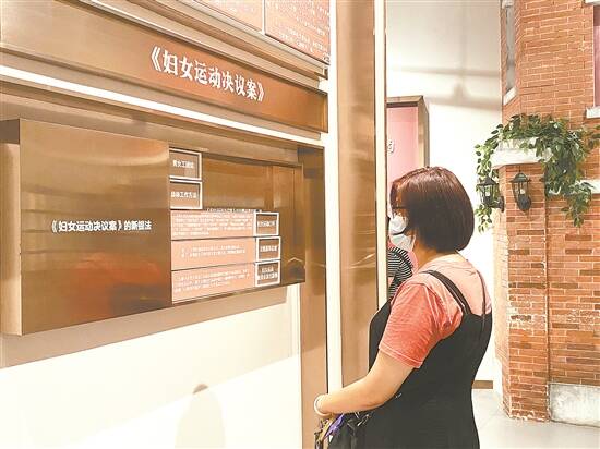 观众在《妇女运动决议案》展板前观看 羊城晚报记者 柳卓楠 摄