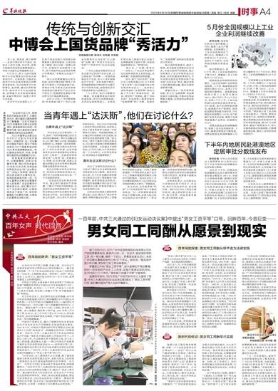 追溯百年变化,1923年在广州召开的中共三大提供了答案:中共三大通过的《妇女运动决议案》提出了“男女工资平等”口号,指引着中国共产党人为此不懈奋斗。