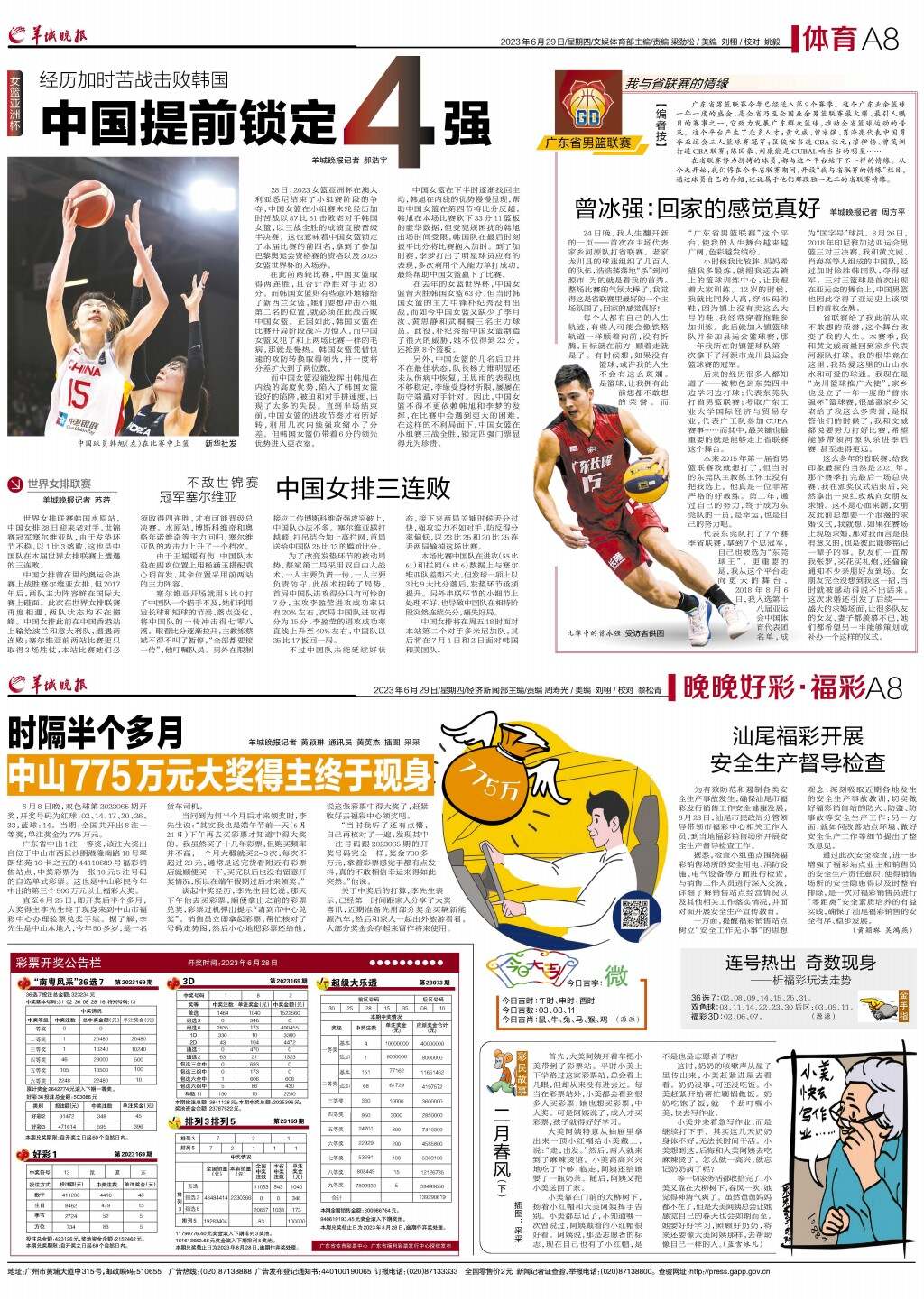第A08版:体育;晚晚好彩·福彩;广告