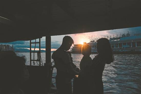 6月29日,天星小轮上的一家欣赏美丽夕阳,乘坐渡轮由中环至尖沙咀