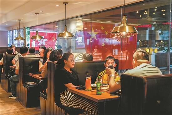 6月29日,尖沙咀一家餐厅内,人们正在享受晚餐