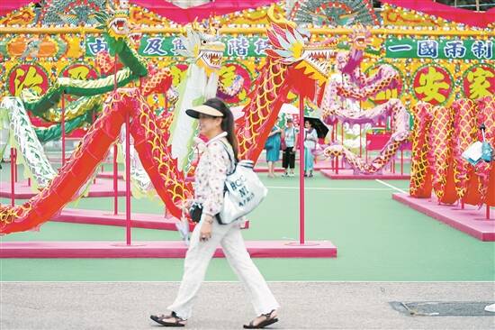 6月30日,维园内,市民路过大型传统扎作工艺品