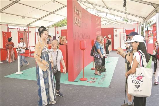 6月30日,维园非遗展览,香港市民与来自中原的汉服模特合影
