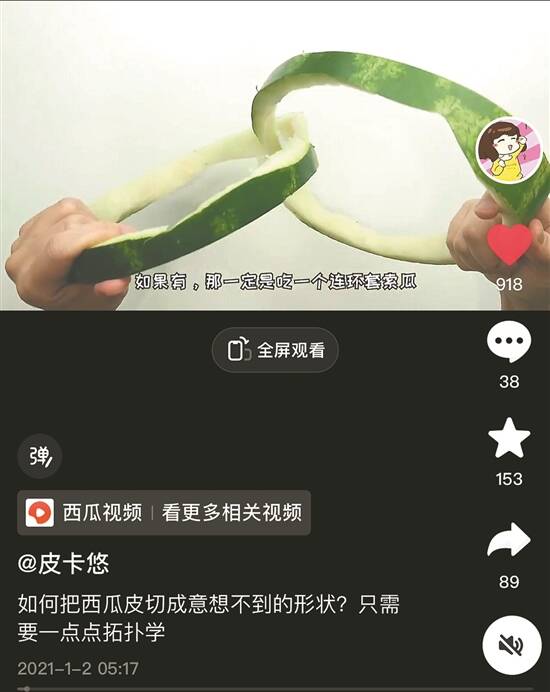 @皮卡悠 的科普视频,总像是一个个引人入胜的小故事。@皮卡悠 跟卖火柴的小女孩玩火柴游戏,却屡战屡败,问题出在哪里?夏天来了,@皮卡悠 吃完西瓜,竟能把西瓜皮切成两个彼此相套的环,原理又是什么?通过这些科普视频,@皮卡悠 把拓扑学和尼姆游戏等科学知识解释得易懂又有趣。