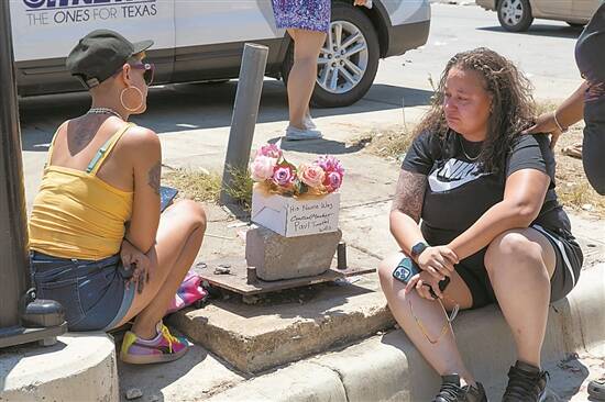 7月4日,人们在美国得克萨斯州沃思堡枪击事件现场附近哀悼遇难者 新华社发