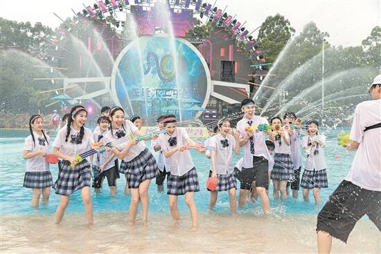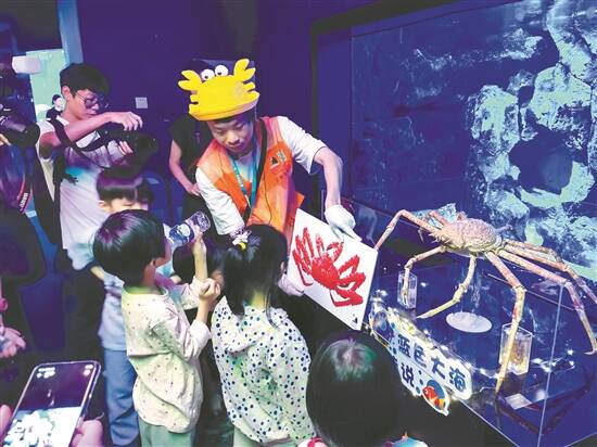 在广州市内,各大景区组织的研学游产品也受到不少家庭青睐。正佳极地海洋世界在暑期推出海洋微生物研学探索营、小水族师训练营等,家长带小朋友探访鱼儿食堂,动手制作小鱼的营养午餐,探秘水化实验室,走进鱼类保育间、对话专业水族师,护航小鱼成长。在“小小水母保育员”夜宿活动中,亲子家庭还可与水母精灵相伴而眠。