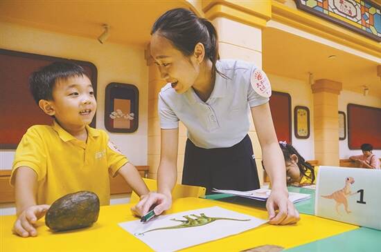 “孩子们,把鹦鹉螺的壳放在耳边,你是不是听到了一些悄悄话?”粤博广东省自然资源展厅内,来自天河第一小学的孩子们体验的这场妙趣横生的《海洋软体动物》研学课程,成为广州研学的城市缩影——面对畅游在蓝色海洋里的海豚、鲸、鲨鱼、魔鬼鱼……听着导师的互动讲解,孩子们一边在研学手册上记录,一边通过游戏、触摸、聆听、问答等方式探索贝类世界。