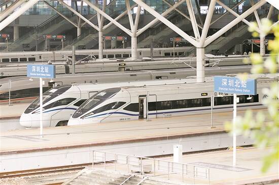 便捷的铁路交通为来往广东的游客和商务人士提供便利。图为从深圳北站开行的高铁列车 羊城晚报记者 宋王群 摄