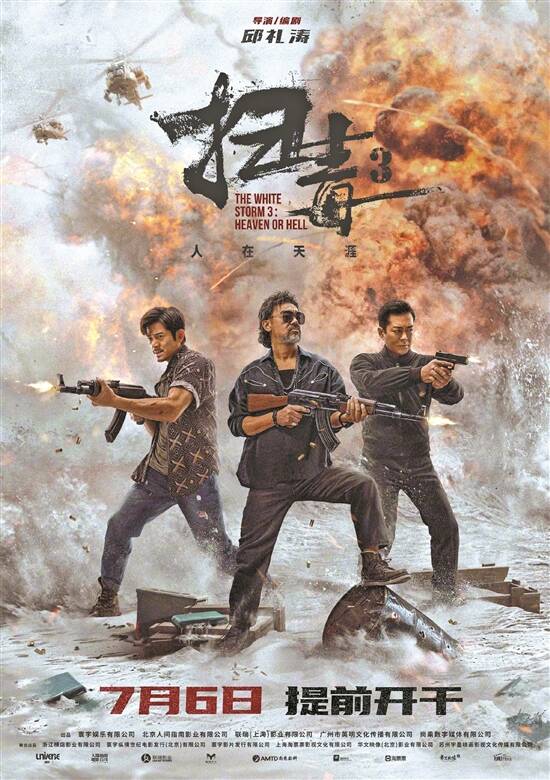 《扫毒3》几乎放弃了人物塑造,转而把力气全部投入到视觉场面的呈现上。故事的发生地在金三角(虽然实际拍摄地仍是在香港流浮山),给了电影更大的发挥空间。邱礼涛顺理成章把动作场面升级成小型战争:拥兵自重的地方大毒枭、热带雨林里的游击战、空袭村寨的轰炸机……在狂轰滥炸之下,124分钟下来,故事已经完全不重要了。只是,没有了兄弟情打底的《扫毒》系列,又跟其他千篇一律的警匪犯罪片有什么区别呢?