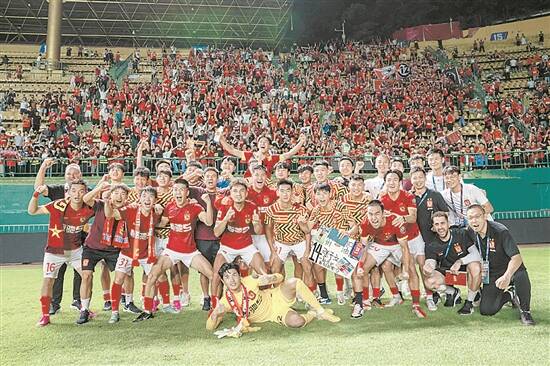 广州队球员庆祝胜利 羊城晚报记者 钟振彬 摄