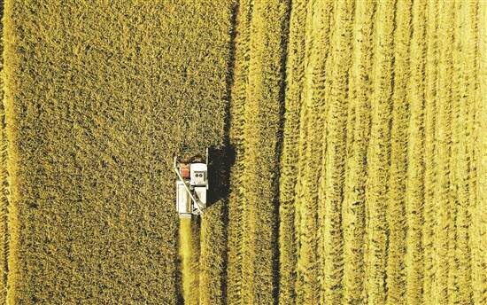 记者在现场看到,稻田里只闻机械声响,未见农人奔忙。一台无人驾驶收割机在工人的远程操作下,按照既定线路缓缓开进田间,进行全程机械化作业。稻谷收割完成后,稻谷被装谷车运往烘干车间交由工人进行上机烘干处理。
