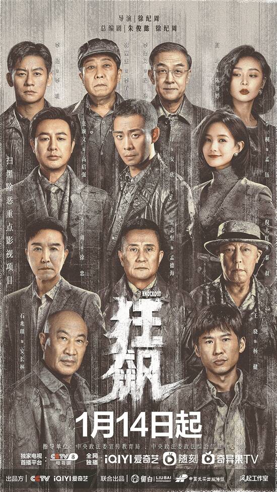 1月14日,由金牌导演徐纪周执导,张译、张颂文、李一桐、张志坚、吴刚领衔主演的电视剧《狂飙》在央视8套、爱奇艺开播,借刑警安欣和卖鱼贩高启强相悖的人生曲线,讲述了一场跨越20年的扫黑除恶专项斗争。该剧是国内首部以扫黑除恶常态化和政法队伍教育整顿为背景的影视作品,开播后,不仅收视率一路走高,张颂文、高叶等演员均凭借对角色的传神演绎爆红。
