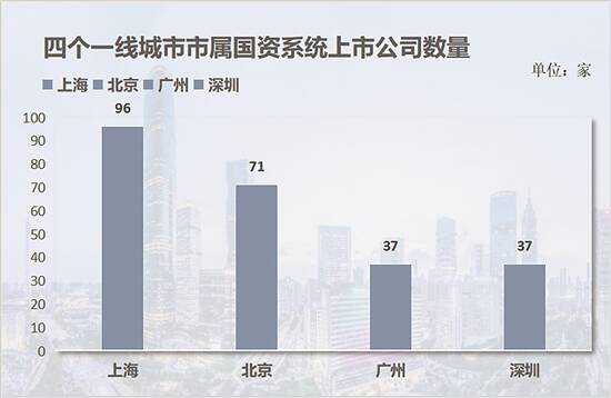 记者梳理发现,在四个一线城市中,上海国资委拥有数量最多的上市公司,截至2022年,旗下共有96家国有控股上市公司;紧随其后的为北京国资委,2022年其市属上市公司增至71家,广州和深圳则各自拥有37家市属上市公司。