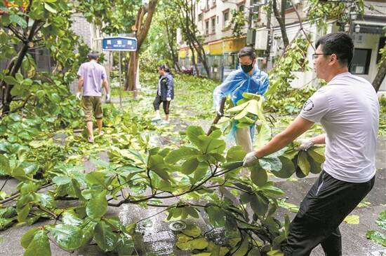 为降低台风带来的影响,湛江市各有关部门周密部署,科学、有序、高效地开展防风抢险救灾工作。18日5时许,湛江市城综局各市政维护工人已经在市区多条道路忙碌起来,开展排水工作,加快恢复道路畅通,保障市民通勤。湛江交警各大队民警、辅警,环卫工人、街道办人员坚守路面,抓紧时间使用砍刀、电锯、斧头等清障工具逐一将被强风吹倒和影响通行的树木树枝清除,同时及时处理受损的交通设施,并提醒来往驾驶人员谨慎驾驶,时刻注意路面交通情况,确保行驶安全。