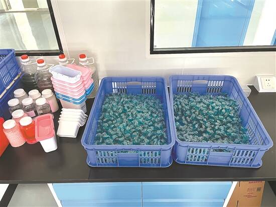 走进优凯科技的生产车间,浓缩的洗衣液、柔顺剂和消毒液通过三腔独立封装设备,“凝结”成为一颗颗晶莹剔透的珠子。优凯科技生产部体系经理税必会向羊城晚报记者介绍称,正在生产的是优凯科技的自有品牌“Ouaini偶爱你”旗下的三腔浓缩酵素洗衣凝珠产品。