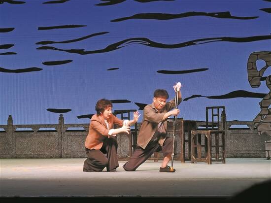 琼霞(左)表演红派原创粤剧小戏《家访》