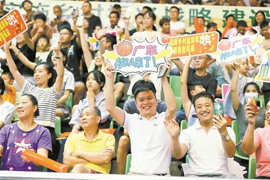 2023全国和美乡村篮球赛(村BA)广东省选拔赛决赛昨晚在“篮球名镇”大朗上演。东莞大朗队以103∶73轻取中山沙溪队,夺得冠军。大朗体育馆座无虚席,气氛热烈 羊城晚报记者 王俊伟 摄