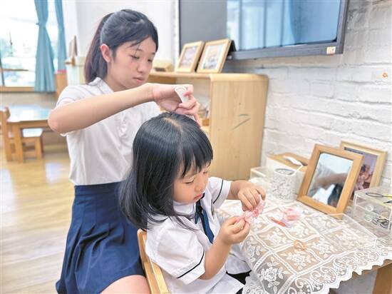 广东省首批示范性托育机构之一,微咪儿童之家的育婴师给孩子梳头