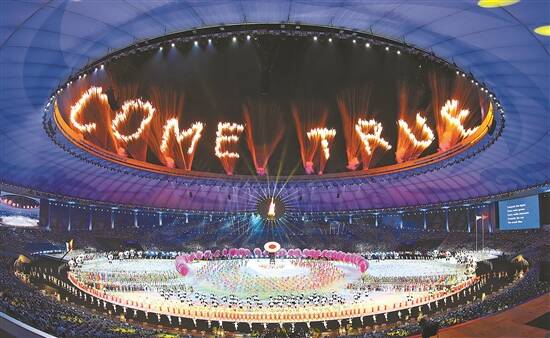 “把世界照亮,听见生命的歌唱”“把未来照亮,眺望美丽的远方”……青年大学生们在圣火下欢聚,共同演唱开幕式主题曲《成就梦想》,整座体育场化为欢乐的海洋。