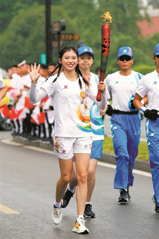 吴艳妮是四川本地人,作为东道主,她热烈欢迎大家来到成都参加世界大学生运动会。她提到自己前两天刚参加了大运会的火炬传递活动,深深感受到了四川人的热情和自豪。“作为其中的一分子,我觉得自己格外幸运,因为我有机会以自己在赛场上的表现来回报这片哺育我的土地,为祖国增光添彩。”