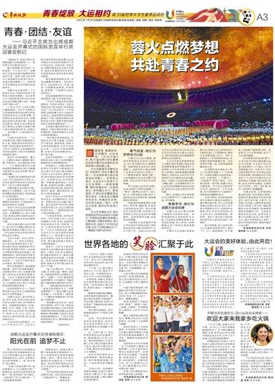 第31届世界大学生夏季运动会开幕式总导演陈维亚在28日召开的成都大运会开幕式专场新闻发布会上表示,非常高兴向全世界奉献了一场“阳光灿烂”的开幕式。