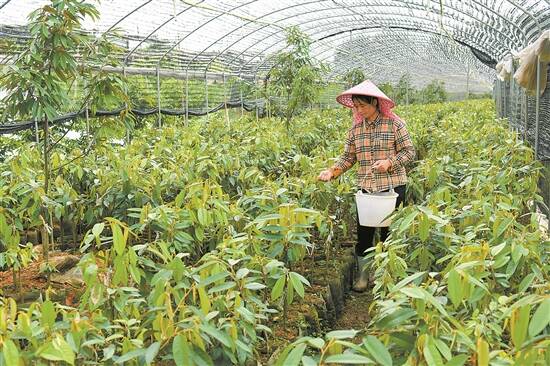 这一坚守,就是五年。经历过树苗“全军覆没”的挫折,也尝过初结果实的喜悦,“衣带渐宽终不悔”的邓育强,逐渐探索出一条符合当地实际的榴莲种植道路。“经过多次摸索,我们得出了最适宜种植‘猫山王’这个品种,为种植推广奠定基础。”邓育强说,迄今为止,在这个项目上投入已经超过千万元,“没有急于求成,做好了打持久战的准备”。