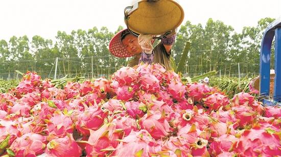 湛江市遂溪县更是我国最早引入火龙果种植的地区之一,也是广东省最大的火龙果种植基地。经过近20年发展,当地火龙果种植面积达10万亩,产量40万吨,亩产量4000公斤,产值30亿元。