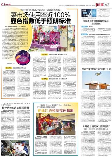 记者来到广州、佛山多家农贸市场、商场、超市进行走访调查,发现“生鲜灯”的使用率几乎达到100%。