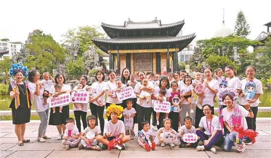 14位怀抱宝宝的妈妈在广州永庆坊粤剧艺术博物馆集体一分钟哺喂自己的孩子 羊城晚报记者 张华 摄