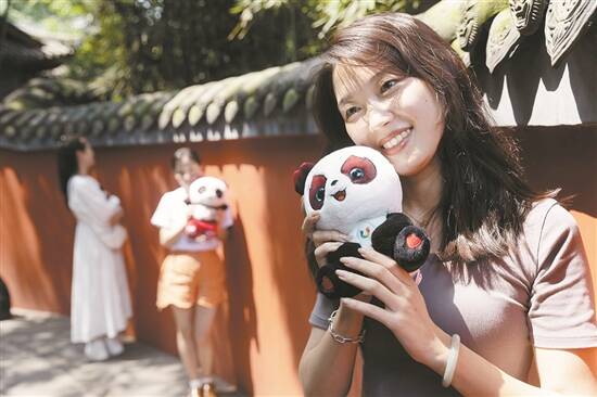除当地旅游景点外,以成都大运会吉祥物“蓉宝”为原型的各种文创产品也成为游客热宠,一些购买了“蓉宝”文创的游客明确表示,得了文创后,更想去成都大熊猫繁育研究基地“看蓉宝原型”。