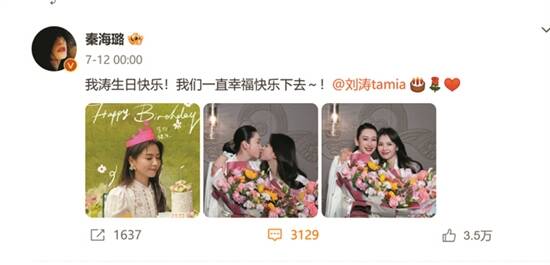 刘涛45岁生日之际,秦海璐在微博上晒出二人的亲密合影,掐点为其送上生日祝福。这也是秦海璐自2016年起,连续8年为刘涛庆生