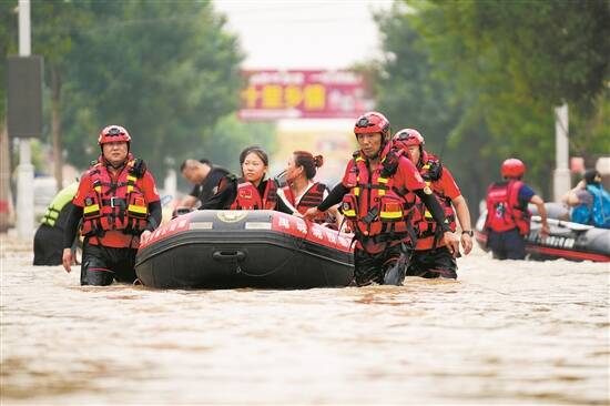 禹城特战救援队队长宋毅告诉记者,该救援队于2日下午抵达涿州,整支队伍9人,携带3艘救生艇、1架无人机,以及大量救生马甲、漂浮绳、救生包等设备。