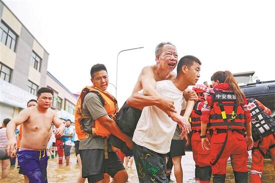老人不愿离开,子女只能干着急。村民张莉的父亲正被困在村里小楼的二层,不愿意听救援队的指令,“好话赖话都和他说了。”“我拽也要把他拽出来!”张莉急得直接往回跑,洪水很快淹没了她的腰部,被救援队员赶紧拉了出来。