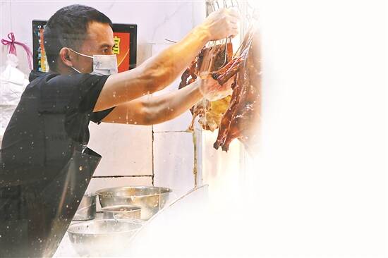 “每次来买烧腊听到音乐声都会感到很舒适,老板真的很厉害,可以一边卖烧鸭一边有自己的兴趣爱好,做自己喜欢的事情,很难得也很佩服。”林女士常光顾余记餐馆,有时她也会惋惜:“觉得老板做烧鸭是浪费人才。”