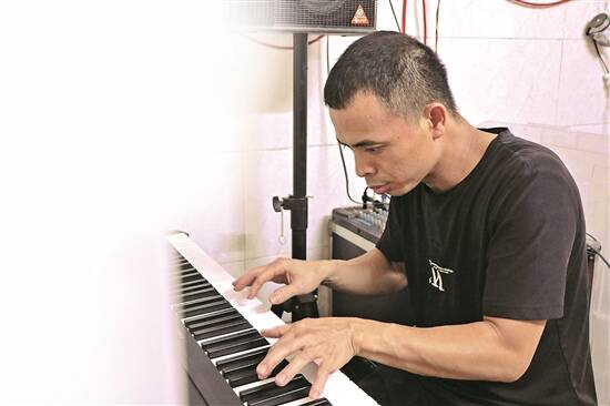肖翠凤与余伟志结婚17年,对音乐一窍不通,但熟悉丈夫对音乐的热爱。“我们以前摆过地摊。他边摆地摊边弹吉他,围了一圈人来看。”肖翠凤回忆道,“我们还卖过那种一把一百来块钱的电子琴,他留下几把,开始学弹琴,也没有人教他,但他真的就自己学会了。”