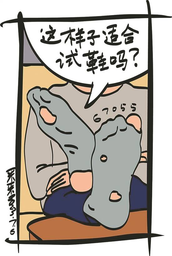 而二郎夫妇却永远不会明白,有着十多年彩龄的我,突然拒绝试鞋,只是因为早上穿的袜子,有3个破洞能看到4根脚指头,还不包括裸露的脚后跟。(杨宝江)