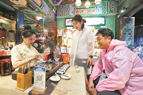 在东门市井不仅可以体验老成都市井生活及糖画、古筝、竹编,还可以体验剪纸、工夫茶等多项非物质文化遗产技艺。与非遗传承人、大运会志愿者深入交流,了解中国文化,探寻成都烟火。浓浓的中华文化、巴蜀韵味,给远道而来的游客们留下深刻的印象。