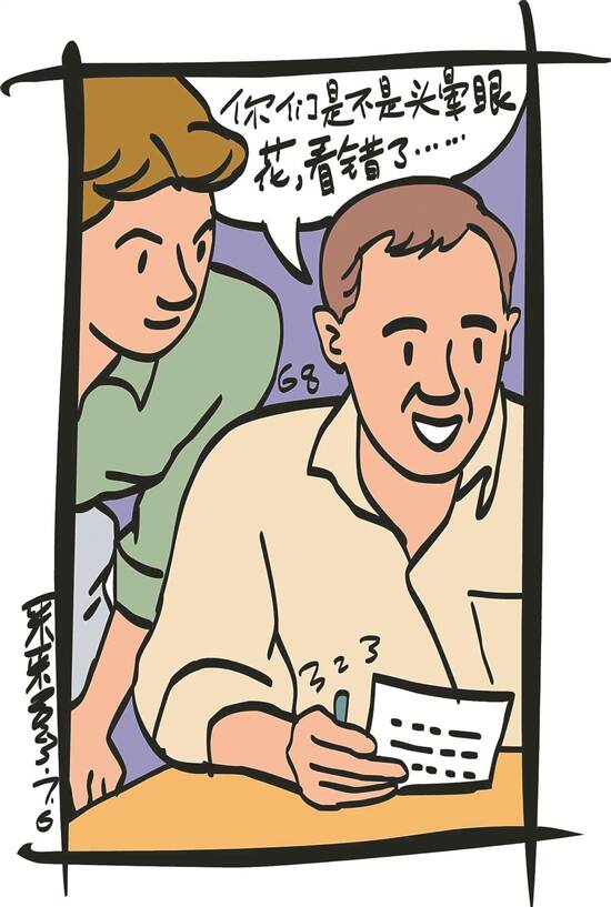 众人凑上前,看看老任的彩票,再看看自己的彩票,一头雾水。