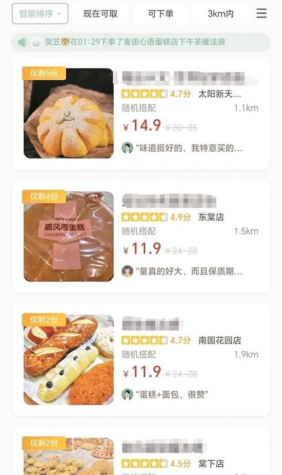 晚上10时,广州“95后”小梁结束了在物流公司的工作,来到一家烘焙店,领取提前在小程序下单的“面包盲盒”。她抱着袋子笑着说:“这是我们打工人的福利了,希望全是自己喜欢吃的!”
