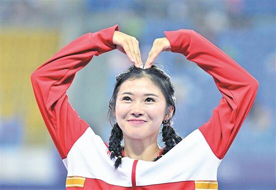 8月4日晚,在全场的欢呼声中,中国队人气选手吴艳妮摘得成都大运会女子100米栏银牌,12秒76的成绩达标巴黎奥运会。她身披国旗,不住向观众挥动双臂,看到媒体拍照,便会大大方方地比一个大大的心,她用实实在在的成绩、诚挚飒爽的招牌动作、阳光有爱的互动让观众们牢牢地记住了她的名字——吴艳妮。