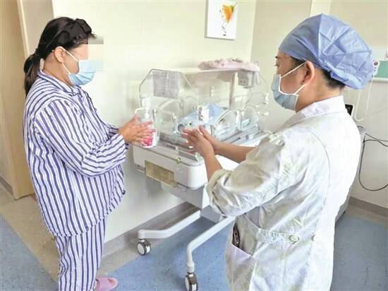 护士指导妈妈科学洗手
