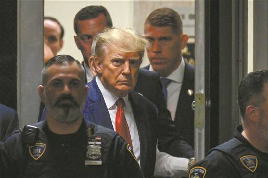 4月4日,美国纽约,美国前总统唐纳德·特朗普走进曼哈顿刑事法庭 视觉中国供图