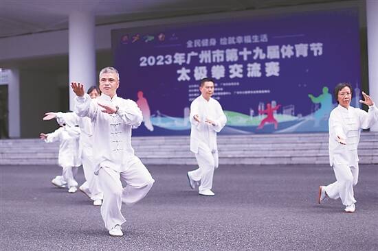 2023年广州市第十九届体育节太极拳交流赛12日在广州天河体育中心举行,本次交流赛吸引了26支队伍近200人参加。