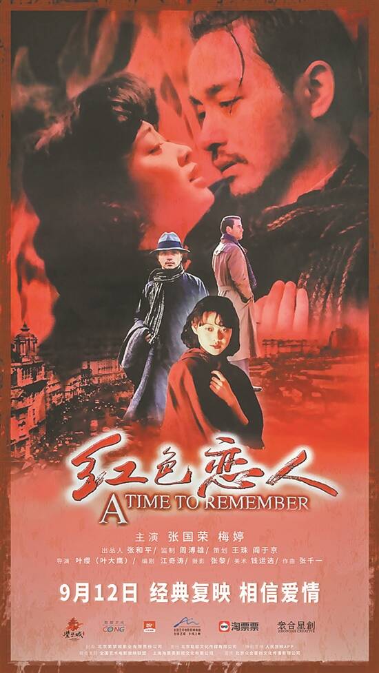 8月11日,由叶缨(叶大鹰)执导,张国荣、梅婷、陶泽如主演的电影《红色恋人》宣布将于9月12日全国艺联专线上映。值得一提的是,重映日为张国荣的67岁诞辰纪念日,今年也是张国荣逝世20周年。